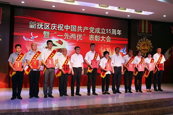6月30日下午,新抚区召开庆祝中国共产党成立95周年表彰大会,对做出突出贡献的先进党组织,优秀共产党员和优秀党务工作者进行表彰。我公司被授予“先进党组织”荣誉称号,任润东被授予“先进党务工作者”荣誉称号,寻蓝春、谢淑兰被授予“优秀共产党员”荣誉称号。