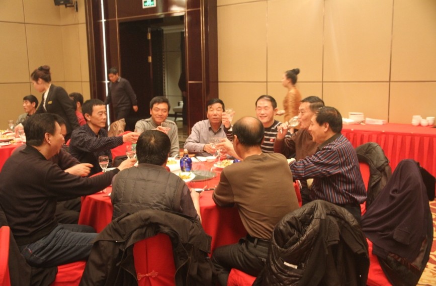 晚宴正式开始,员工们一同举起酒杯
